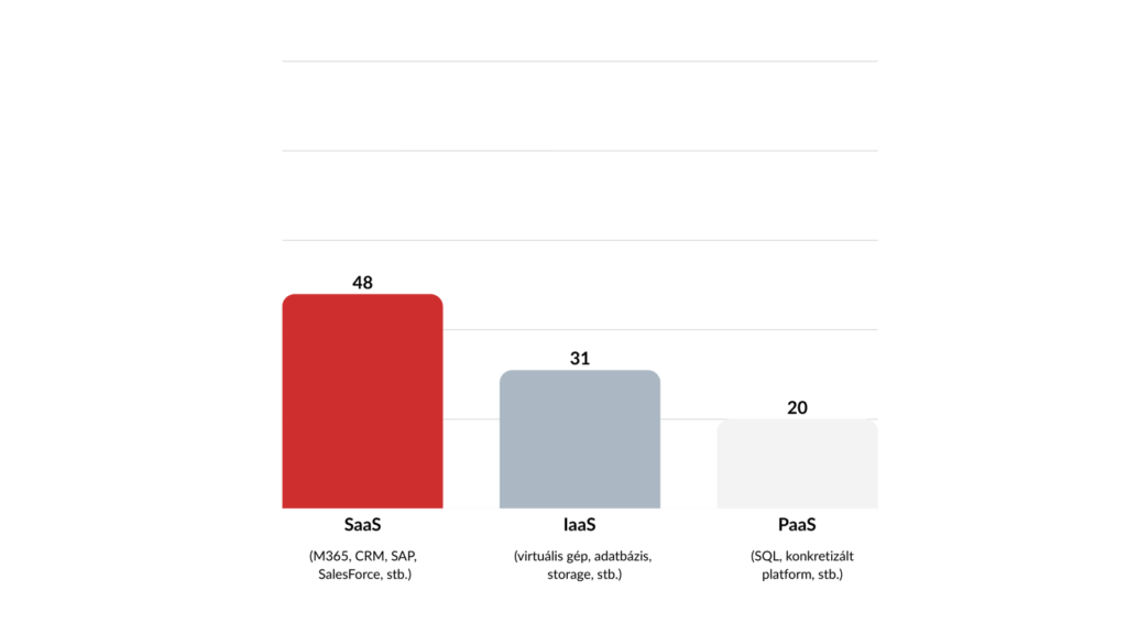 A válaszokból az is egyértelműen kiderül, hogy a cégek többsége hibrid modellt követ, vagyis mindhárom szinten (SaaS-PaaS-IaaS) jelen van a felhőben.