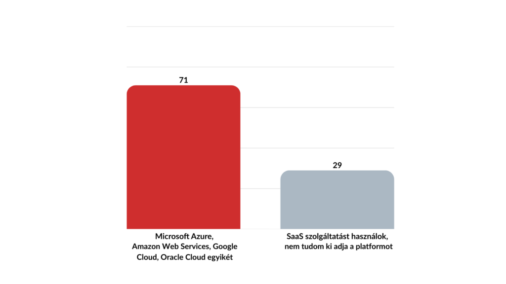 A nagy márkák (Microsoft Azure, az Amazon Web Services, a Google Cloud és az Oracle Cloud) lefedik a használt szolgáltatások 71%-át. A megkérdezettek elég nagy hányada, 29% nem tudta megnevezni a használt szolgáltatóját.