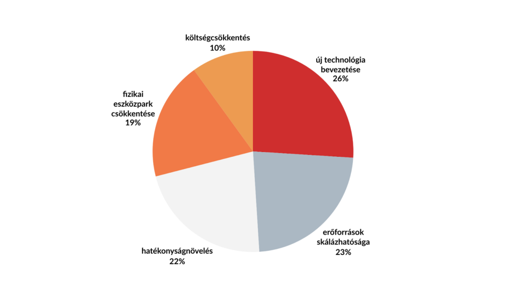A válaszok alapján látszik, hogy a felhőbe költözés leggyakrabban valamilyen technológiaváltással jár együtt (26%). A skálázhatóság (23%) és a hatékonyságnövelés (22%) kevés lemaradással követik ezt.