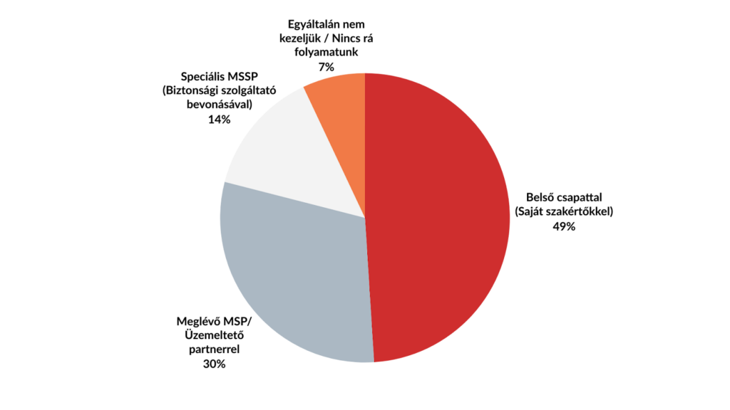 • A belső csapat alkalmazása (amit a válaszadók 49%-a jelölt meg) komoly befektetést igényel a humán erőforrásba, de lehetővé teszi a közvetlen kontrollt a kritikus adatok felett.